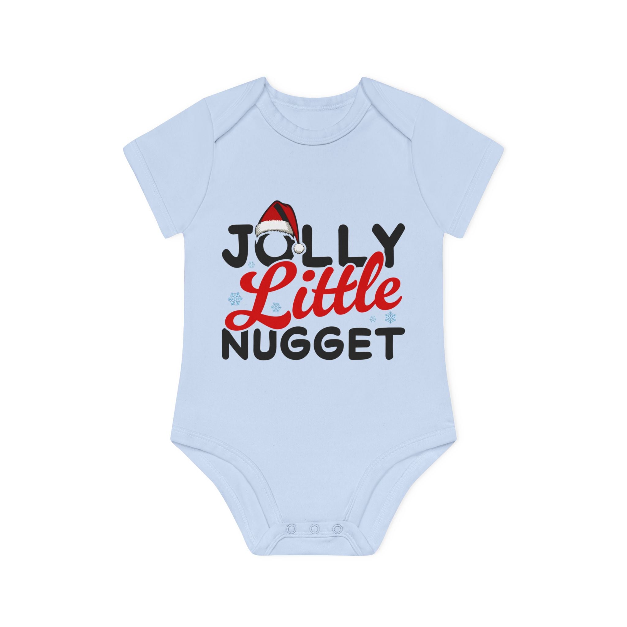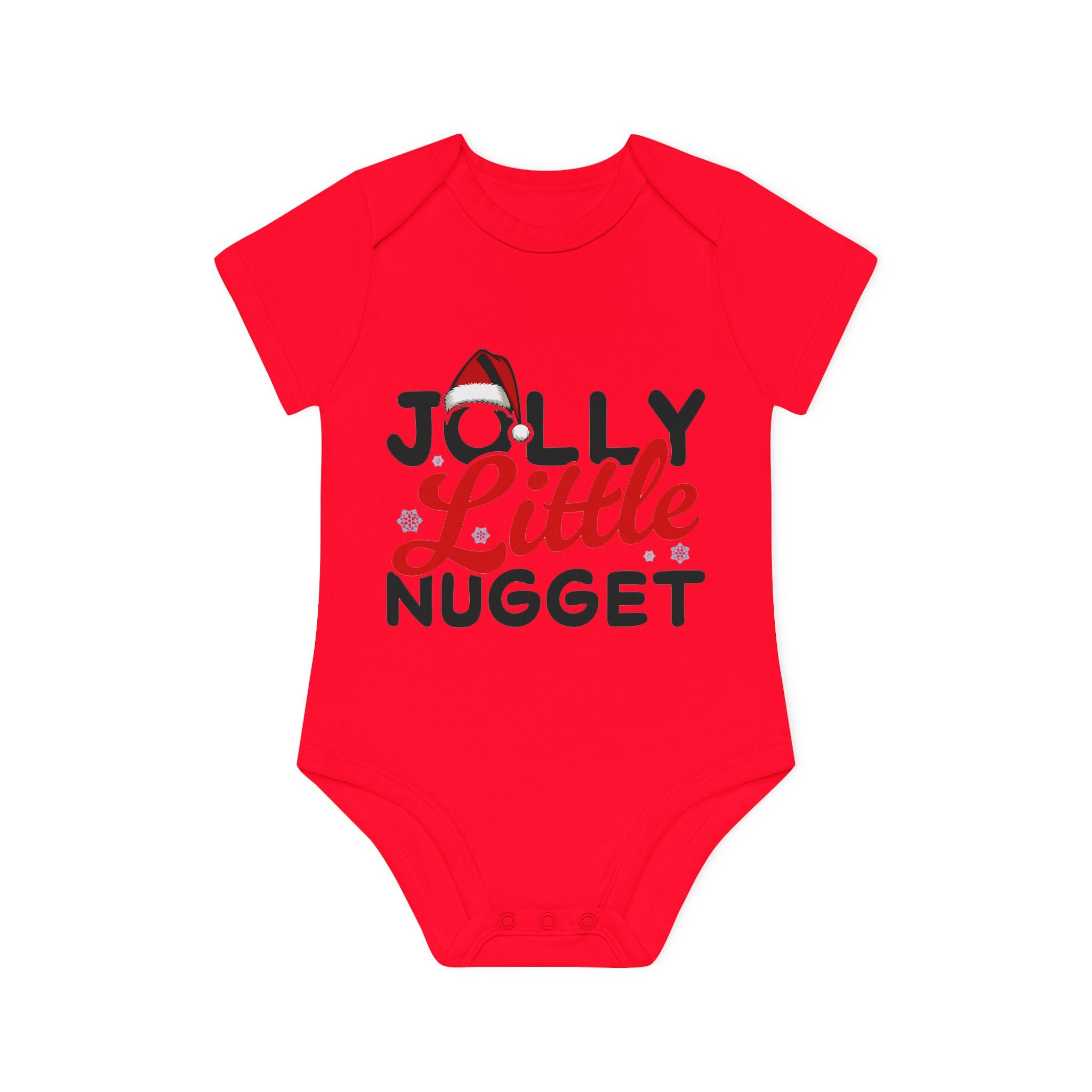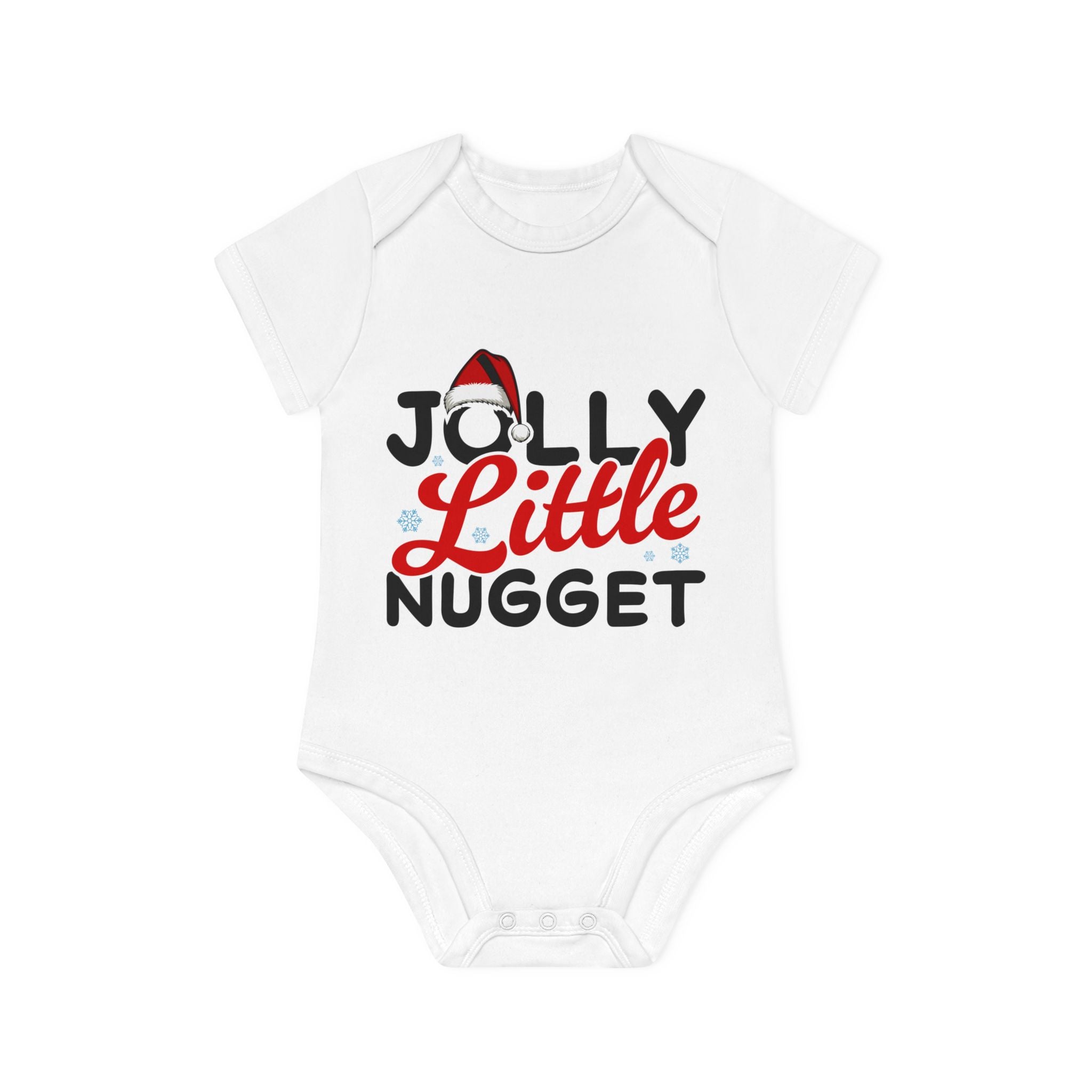 Dress your little nugget in holiday cheer with the adorable "Jolly Little Nugget" Baby Organic Short Sleeve Bodysuit. Made from soft, organic cotton, this bodysuit is gentle on your baby's skin and perfect for warmer weather. The playful slogan adds a touch of festive fun, making it the ideal outfit for family photos, holiday gatherings, or simply snuggling on the couch.